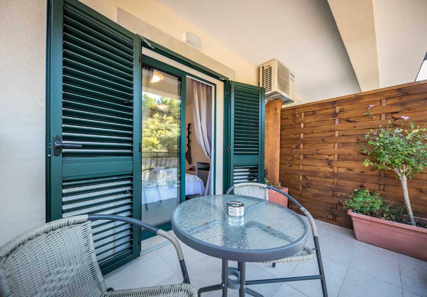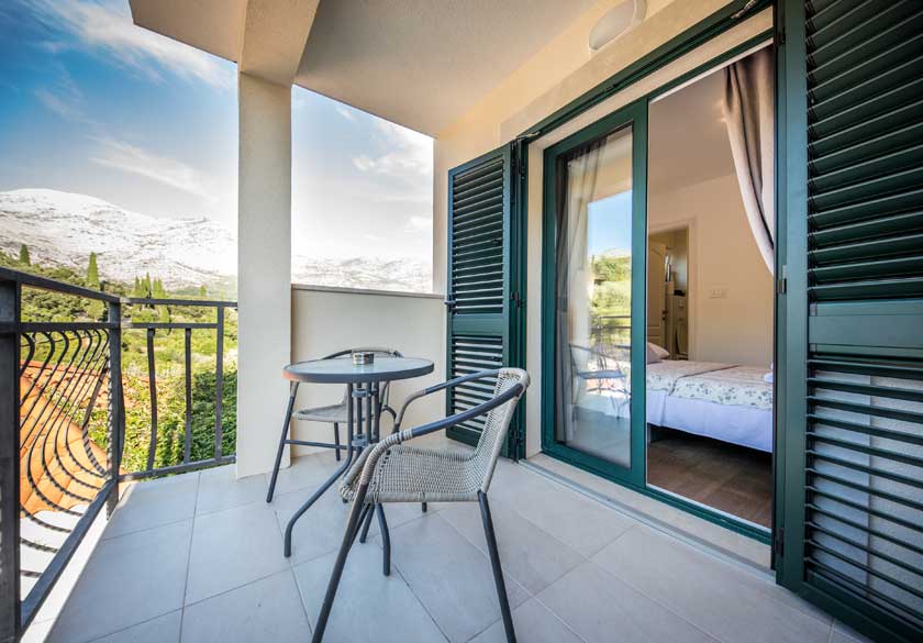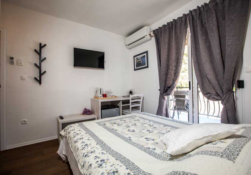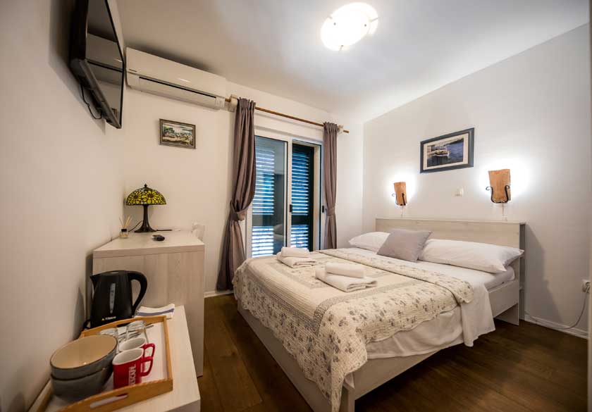 Soba Mato - sadrži krevet za dvije osobe, radni stol, veliki ormar, mini-frižider, kupaonicu i balkon (pogled na brdo - sjever).